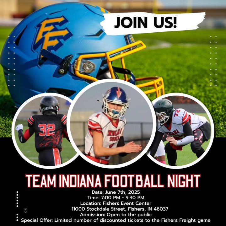 Join us for Team Indiana Football Night at the Fishers Freight game! 🏈 📍 June 7, 2025 – Open to everyone! Let’s pack the stands and rep Team Indiana as we celebrate football, family, and community. 🎟️ Learn more: teamindianafootball.com/community (fb)