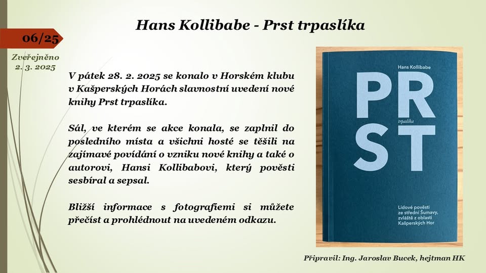Informace ze slavnostního uvedení nové knihy zde https://hornikralovaci.com/hans-kollibabe-prst-trpaslika/ (fb)