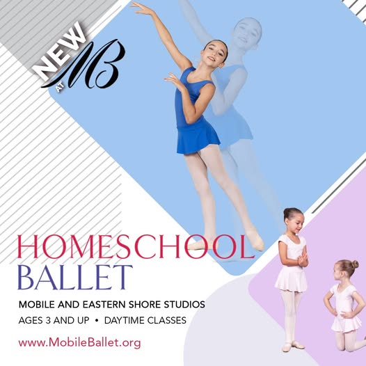 📣HOMESCHOOL FAMILIES: Join us for Mobile Ballet's new daytime Homeschool Ballet classes! Enrollment is still open for classes in Mobile and Daphne. 🌟 Classes are designed specifically for homeschool families, perfect for integrating quality ballet training into your child's educational schedule. Great for all ages, girls and boys! 📍 Class Locations: • Tuesdays in Daphne • Thursdays in Mobile ✨ Class Times: • Homeschool Primary (Ages 3-5) • 1:30-2:15 pm • Homeschool Ballet (Ages 6 and up) • 1:30-2:30 pm As South Alabama's premier classical ballet school, we're excited to bring the same high-quality instruction and professional, encouraging atmosphere that families have trusted for years - now tailored to fit your homeschool lifestyle. Whether your child is trying dance for the first time or looking to advance their skills, Mobile Ballet is the right place! 📍Mobile Studio - 4351 Downtowner Loop N, Mobile 📍Eastern Shore Studio - 26150 Equity Drive, Daphne 👉Register at www.mobileballet.org or email info@mobileballet.org #MobileBallet #MobileBalletEasternShore #DanceEducation #Ballet #Homeschool #Mobile #Daphne (fb)