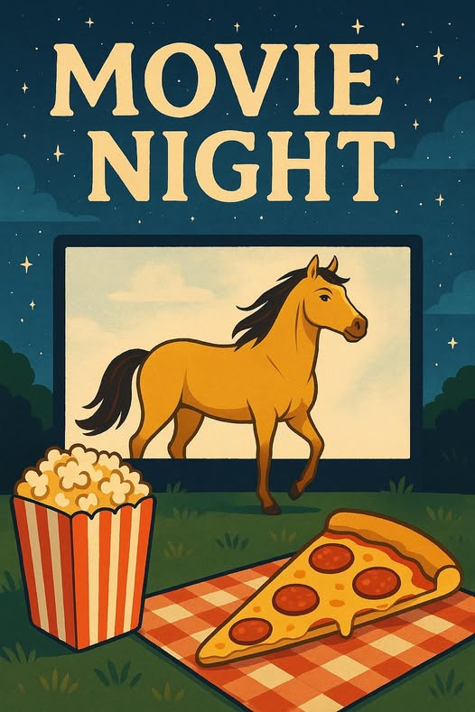 We are so excited to welcome all Our registered guest tonight for pizza, popcorn and candy bar and a movie in the barn with all your favorite horses and ponies . See yall today ar 4:00. (fb)