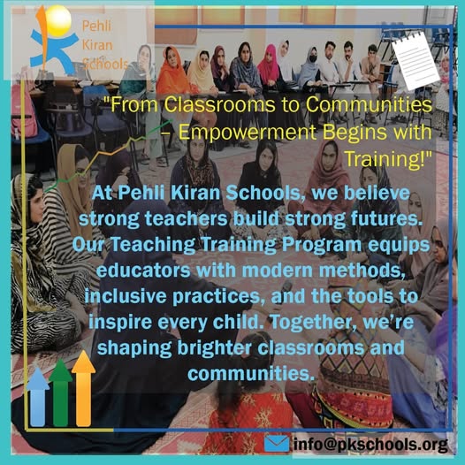 "Building a brighter future, one training session at a time! Our dedicated teachers at Pehli Kiran Schools are enhancing their skills and knowledge to provide the best education for our students. #TeacherTraining #EducationExcellence (fb)