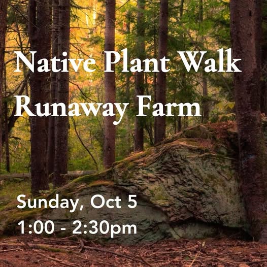It’s shaping up to be a beautiful weekend for a walk! Join Cole Campbell, Production Horticulturist at Native Plant Trust, to explore Runaway Farm in Cape Elizabeth. Runaway Farm features diverse ecosystems, from meadow, to forest, to wetland, and is home to the endangered cottontail rabbit, among many other mammals, birds, insects and more. We’ll talk about the diverse native plants of this place and the wildlife they support. Hope to see you there! Link to register in bio. image description: Text in white lettering reads “native plant walk at Runaway Farm, Sunday October 5, 1:00 - 2:30pm” over a background photo of the preserve. The photo shows a large triangular boulder in the foreground, along with many tree trunks, and leaves in green, yellow and red behind. (fb)