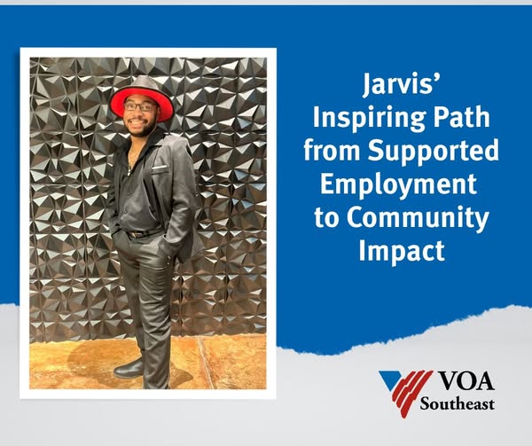 Meaningful employment turns little steps into big strides. 💼 At VOA Southeast, our Supported Employment services offer personalized job coaching and skill development training to help individuals achieve dignity, purpose, and belonging through work. With the support of VOA Southeast, Jarvis, a program participant, founded a local nonprofit that focuses on supporting people with disabilities and educating his community. Read Jarvis’s full story: https://hubs.ly/Q03q-FrN0 #EmploymentForAll #VOASoutheast#WorkforceInclusion (fb)