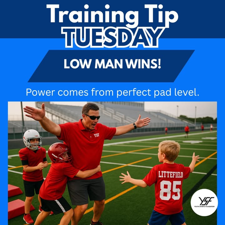 📉 Training Tip Tuesday: Why “Low Man Wins” Matters 🏈 You’ll hear our coaches say it often—“Low man wins!” It’s more than just a phrase. Teaching players to stay low helps them build strength, balance, and proper technique to stay safe and succeed on the field. 💪 Another step in helping your athlete grow through the game! 👉 Ready to register? Sign up today at [https://youthsportsfoundation.org/football/] #TrainingTipTuesday #LowManWins #YouthFootball #YSFParents #BuiltNotBorn (fb)
