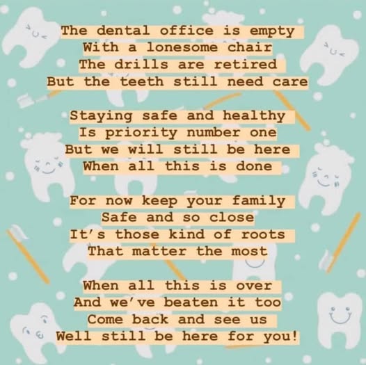 As we continue to navigate the current Coronavirus COVID-19 outbreak, We are sorry that we must restrict our patient care this way. We are serving you in the safest manner possible by following the advice of the U.S. Centers for Disease Control and Prevention under these difficult circumstances. In doing this, we will safeguard the health and safety of our patients, our care providers, and the whole community. We hope you understand, and we thank you for your cooperation. (fb)