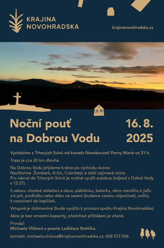 Srdečné pozvání na již tradiční noční pouť na Dobrou vodu s Míšou Vlčkovou✨ (fb)