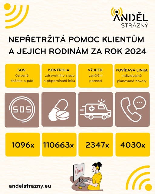 Naše práce má smysl: POMOC V ČÍSLECH ZA ROK 2024 . Občas je důležité se zastavit a podívat se, kolik dobrého se společně podařilo. Každý den jsme tady pro ty, kteří nás potřebují – a díky tomu můžeme sdílet příběhy pomoci, které mění životy. . Jaro pomalu klepe na dveře, dny se prodlužují a my se ohlížíme zpět na uplynulé měsíce. Kolika lidem jsme podali pomocnou ruku? Kolik krizových situací jsme zvládli? Kolik telefonátů na Povídavou linku přineslo radost a zmírnilo osamělost? . - Poskytnutá pomoc v číslech - Zachráněné životy díky SOS tlačítku - Hovory, které přinesly úsměv . Každé číslo v sobě skrývá skutečný příběh. Děkujeme, že jste s námi. 💛 . . . #SOStlacitko #SOS #AndelStrazny #TisnovaPece #Pomahame #Seniori #ZestarnemeSpolu #PomocDomaIVenku #Babicka #Dedecek #Handicap #OZP #TymAndel #DelameToSLaskou #ZachranaZivotu #BezpeciProVsechny #NejsiSam #PodporaNaDalku #PovidavaLinka #PomahameSrdcem #💛 (fb)