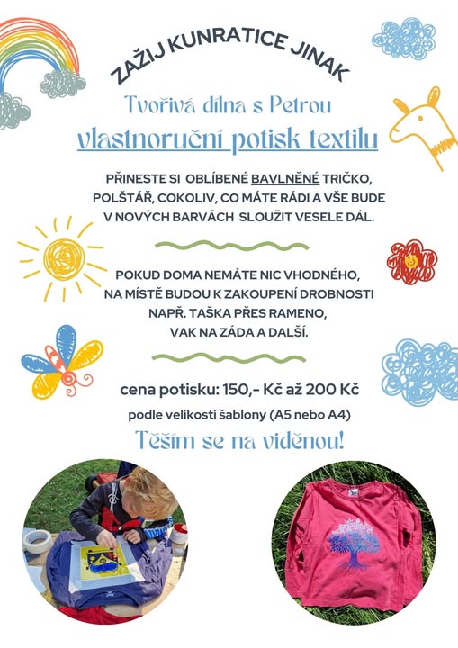 Už se vám okoukalo staré oblečení? Nebo se na něm objevil flíček, který potřebujete zamaskovat? Vemte ho s sebou na Zažít Kunratice jinak 2025 a dejte mu nový život na našem workshopu 👗👕❤️♻️👍 (fb)