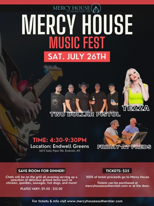 🎟️Tickets are selling fast🎟️ Get yours before they sell out!! Mercy House Music Fest - Sat. July 26th! A great way to support Mercy House & enjoy an afternoon of live music, good company & delicious food! Tickets available at: https://mercyhousesoutherntier.kindful.com/e/2025-mercy-house-music-fest #fundraiser #terminalillness #livemusic #endicottny (fb)