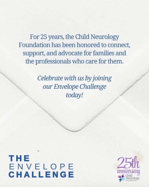 To commemorate CNF's 25th anniversary, we are opening up the CNF Envelope Challenge! 📨 Pick any of the 300 envelopes from $1 to $300 on the board. Help us reach halfway! Participating in our CNF Envelope Challenge helps fuel trusted education, practical tools, and the connections that make care feel coordinated and clear. Choose an envelope that fits your budget and help us keep this important work moving! https://envelopechallenge.org/childneurologyfoundation/challenge/ (fb)