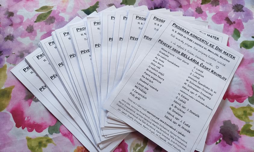 Programy na zítřejší Koncert ke Dni matek - Boletice jsou vytištěné. Všichni jste srdečně zváni. ♥️ (fb)