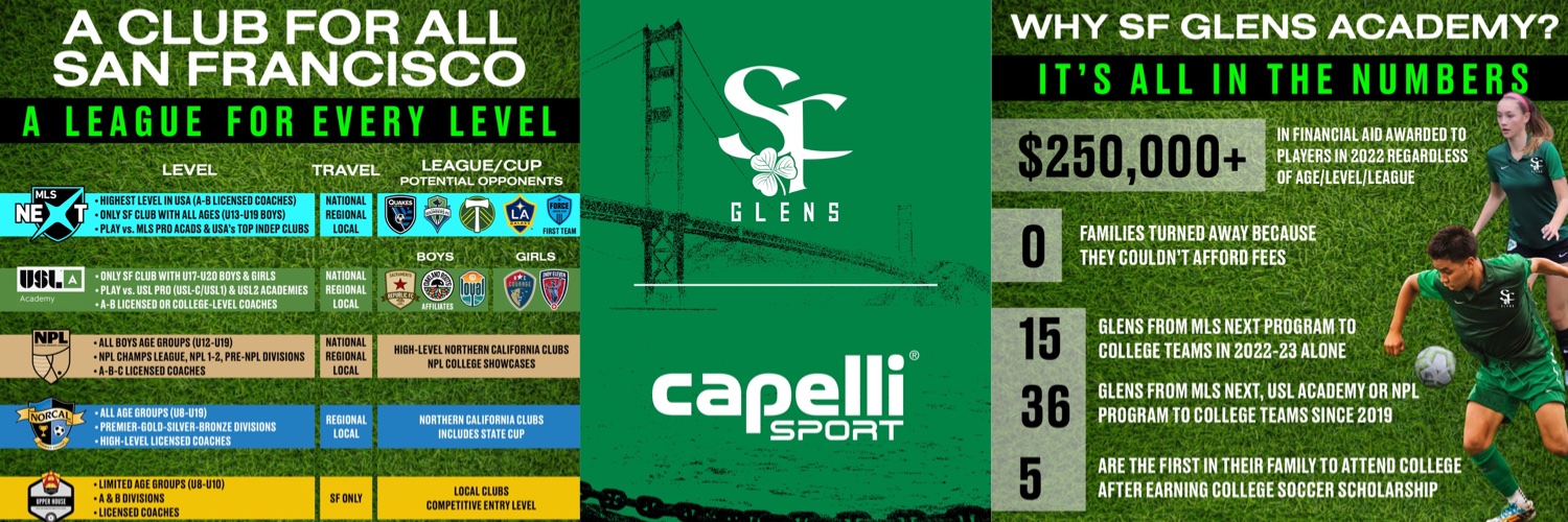 SAN FRANCISCO GLENS ACADEMY YOUR COMMUNITY SOCCER CLUB SINCE 1961 LATEST NEWS LATEST VIDEOS INSTAGRAM FEED MEET OUR CLUB PROGRAMS ON THE FIELD PROGRAMS OFF THE FIELD MORE GLENS Get Email Updates. SUMMER CAMP REGISTRATION PARTNERS AFFILIATIONS HOME ABOUT PROGRAMS TRYOUTS COMMUNITY SHOP . .