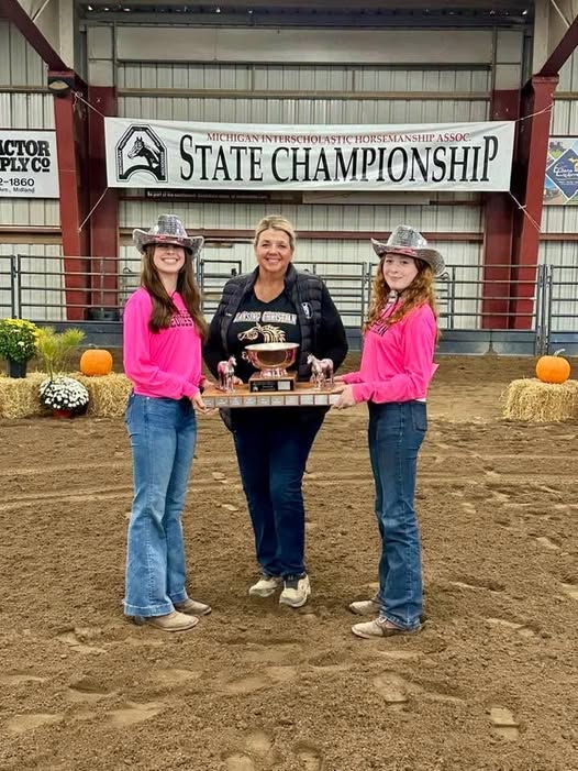 Five days of intense competition, 15 events, and a state title! A massive congratulations to junior Eva Dale and junior Ari Erickson, the powerful two-person LCS Equestrian Team and their coach, Lisa Luton Hodges. They beat out 11 Division D teams to be crowned state champions by the Michigan Horsemanship Association. Their hard work paid off! (fb)
