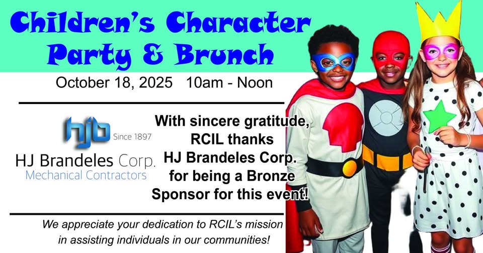 Children's Character Party October 18, 2025, 10am - Noon With sincere gratitude, RCIL thanks Brown and Brown Insurance for being a Silver Sponsor of this event! We appreciate you dedication to RCIL's mission in assisting individuals in our communities! (fb)