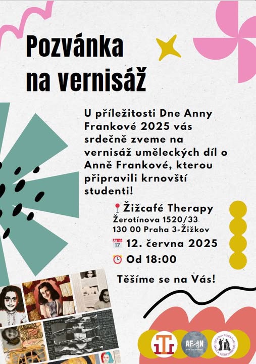 Vernisáž konaná u příležitosti připomínky narozenin Anne Frankové (12. 6. 1929) v Žižkostele na Praze 3 se blíží! (fb)