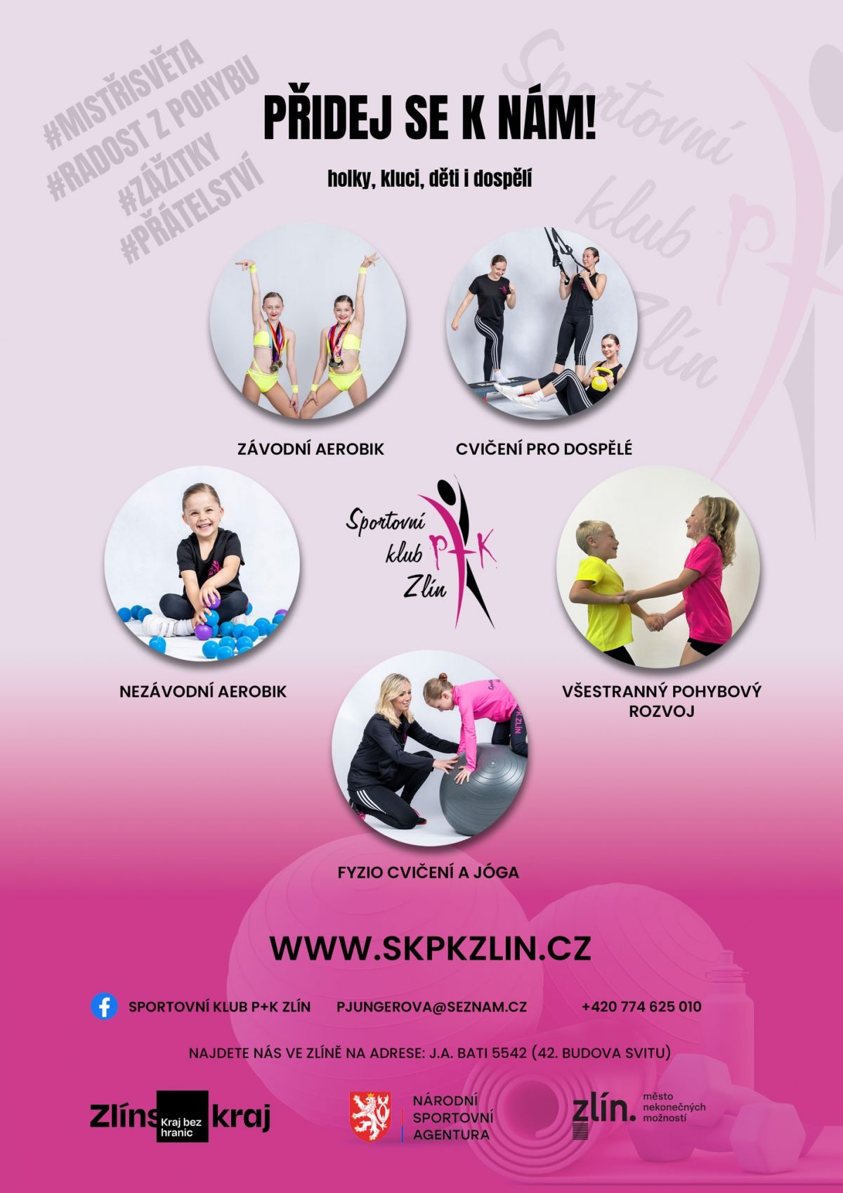Sportovní klub P+K Zlín přijímá nové členy, včetně dětí od tří let. Klub se soustředí na rozvoj pohybových dovedností a poskytuje podporu pro všechny úrovně sportovního zájmu.