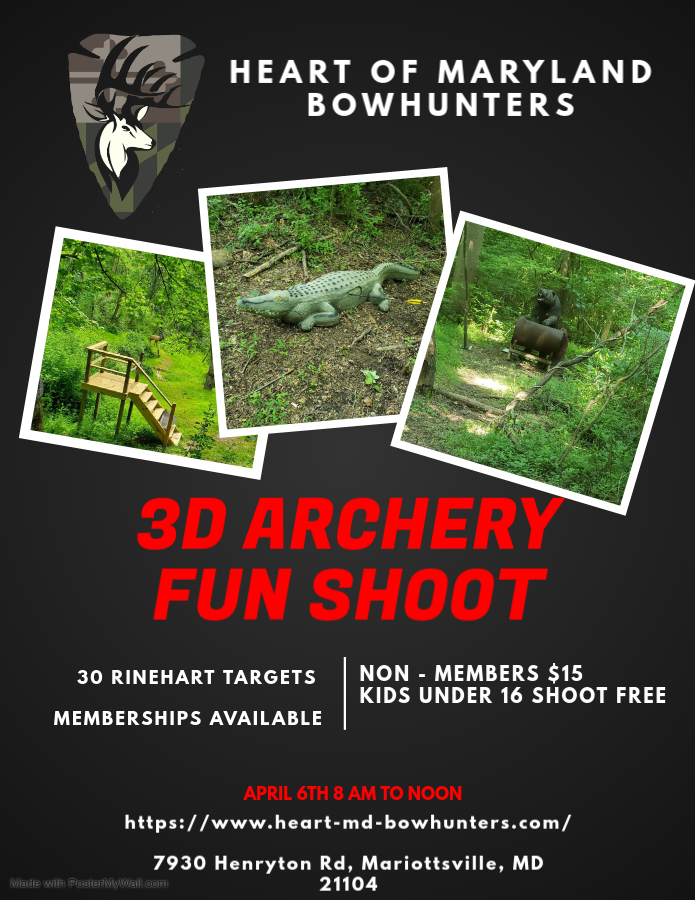 Heart of Maryland Bowhunters is a memberrun organization committed to promoting the sport of archery through education training and practical experience. We offer a place for everyone to learn practice and develop archery skills. All are welcome regardless of whether or not you are a hunter or a target archer. The club is a nonprofit organization under Internal Revenue Code Section 501c 3.
