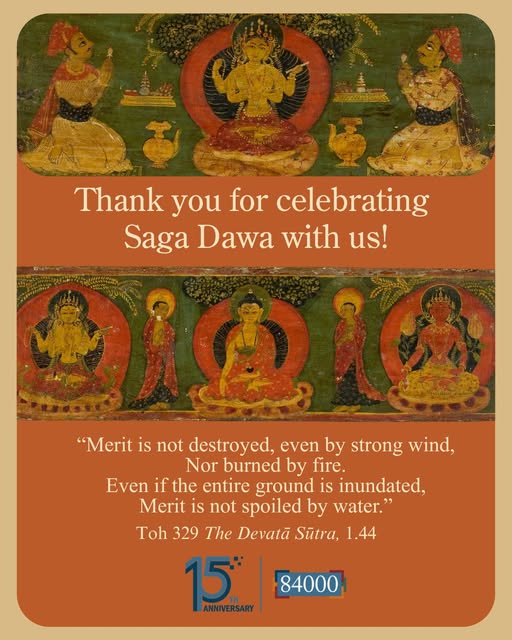 🌕 Saga Dawa Month Wrap-Up: A Month of Wisdom, Merit & Celebration As Saga Dawa draws to a close, we reflect with deep gratitude on a month filled with teachings, practice, and collective celebration. We kicked off with “Sunlight on Wisdom” — a live teaching by H.E. Avikrita Vajra Rinpoche. If you missed it, or want to watch it again, visit our YouTube channel 👉https://www.youtube.com/watch?v=omkeckeyeHo Throughout the month, we shared #ReelWisdom clips, newly translated texts, fresh insights from our translators, and a progress report — all drawn from the profound Perfection of Wisdom teachings. A special highlight was the 24-hour global recitation of The Dhāraṇī of “The Perfection of Wisdom in Twenty-Five Thousand Lines”, co-hosted with Siddhartha's Intent, which received over 6,000 views during the 24-hour period. This joyful gathering brought practitioners together from around the world to celebrate Saga Dawa, the Perfection of Wisdom teachings, and Rinpoche’s birthday. 🙏 Thank you for joining us throughout this sacred month. May the wisdom and merit generated benefit all beings and continue to inspire us on the path. (fb)