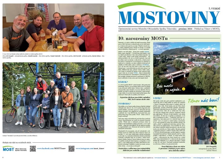 Na konci prosince 2024 vyšly naše MOSToviny 2024. Račte nahlédnout: https://www.most-tisnov.cz/mostoviny/ (fb)