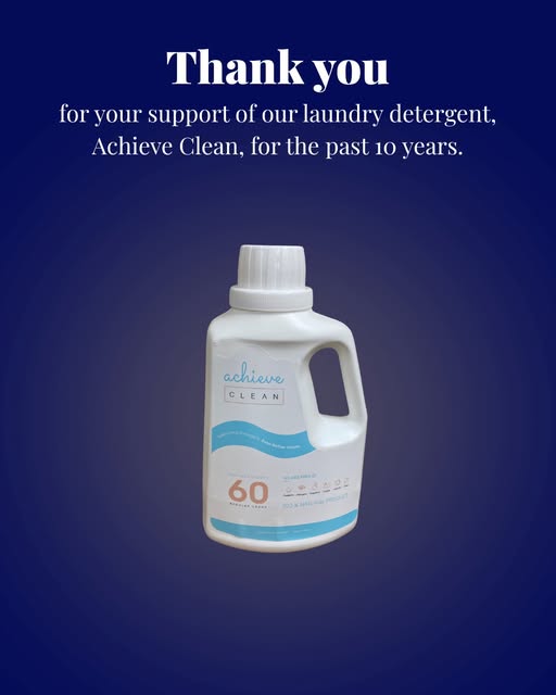 After ten meaningful years, Achieve Services has made the difficult decision to close Achieve Clean. What began in 2015 as a way to create employment opportunities for adults with disabilities became so much more thanks to the incredible support from our customers, partners, and community. We are deeply grateful to everyone who believed in our mission and chose Achieve Clean laundry detergent for their laundry needs. While this chapter is coming to a close, we are already exploring new possibilities for the future. Stay connected with Achieve Services as we look ahead to what is next. Thank you again for your great support of Achieve Clean and of adults with disabilities. (fb)