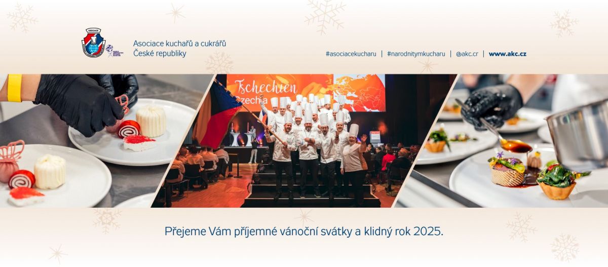 Asociace kuchařů a cukrářůČeské republiky AKC, váš partnerve světě gastronomie Reprezentuje ● vzdělává ● spojuje Staň se členem AKCa ochutnej naše výhody Vzdělávání ● networking ● soutěže slevy ● keriérní postup ● ambasadorský program Naši partneřiPodpoř českou gastronomii a staň se partnerem CentrálaAKC ČR Pražská a Středočeská Brno Karlovy Vary Šumava Severní Čechy Východní Čechy Severní Morava a Slezko Přihlaš se k odběrukulinářských novinek. Cukrářský kurz - Modelování z fondánu, 15. 02. 2025 Událost měsíce.