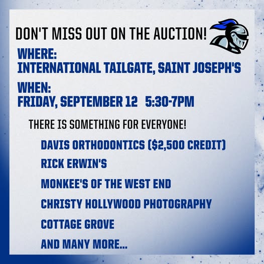 We are looking forward to seeing you tomorrow night for the Welcome Back International Tailgate. September 12th - 5:30PM-7:00PM SJCS Parent Leader Groups will be providing FREE hot dogs, condiments, plates, flatware, and napkins. There is no cost for Saint Joseph's families to attend, though we ask that you bring an international dish (main dish/side dish/dessert) to share. (American food is fine, too!) If possible, please bring food in a disposable container. RSVP Here: https://docs.google.com/forms/d/e/1FAIpQLScFUWM4zTehUMf67rGTpOCUhxO8j-ViEh_UREeuBUjCtc75OA/viewform And don't miss out on the auction! We have auction items from: Davis Orthodontics ($2500 Gift Card) Rick Erwin's Barre 3 Monkee's of the West End Christy Hollywood Photography DeMarcos Bark Happy Cottage Grove Greenville Drive Dargan Mudge (interior designer) Freecoat Nails Plus many more fantastic businesses! (fb)