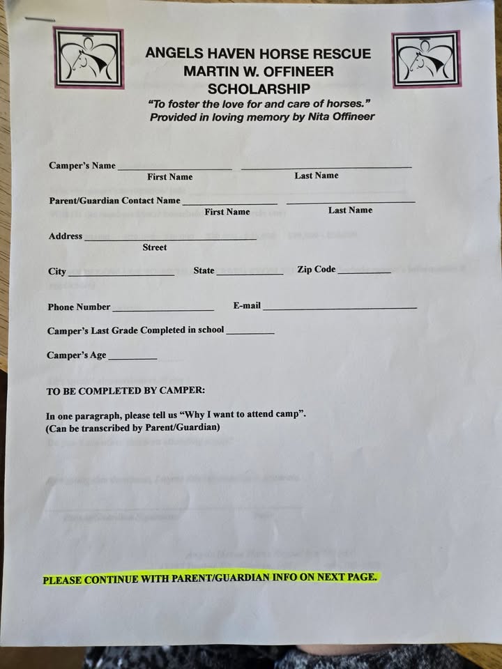 Who knows of child between the ages of 5 and 16 that would love to attend horse camp but needs financial assistance? We have a wonderful opportunity for them. Thanks to our kind volunteer, Nita, please find our first annual horse camp scholarship. Please see the form and call 440.781.5060 for questions. Thank you! (fb)
