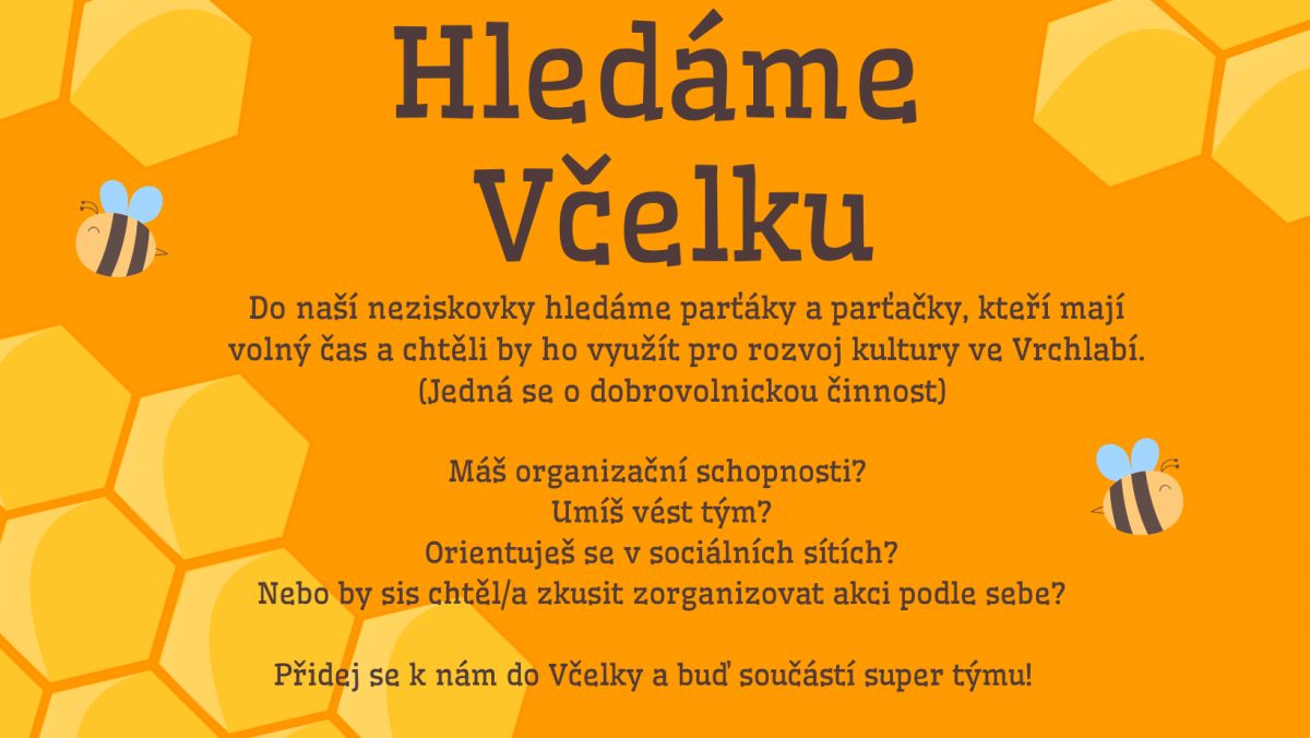 Hlavni strana Vcela Krknose z. s. VolnoCasove Edukacni Laskyplne Aktivity Nasim cilem je vytvorit ve Vrchlabi prostor ke spolecnym aktivitam a setkavani. Misto kde se muzete potkat s lidmi spolecnych zajmu.