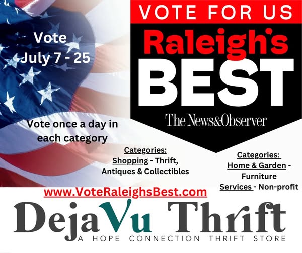 https://www.voteraleighsbest.com/ You can vote once a day in each category for DejaVu Thrift! (fb)