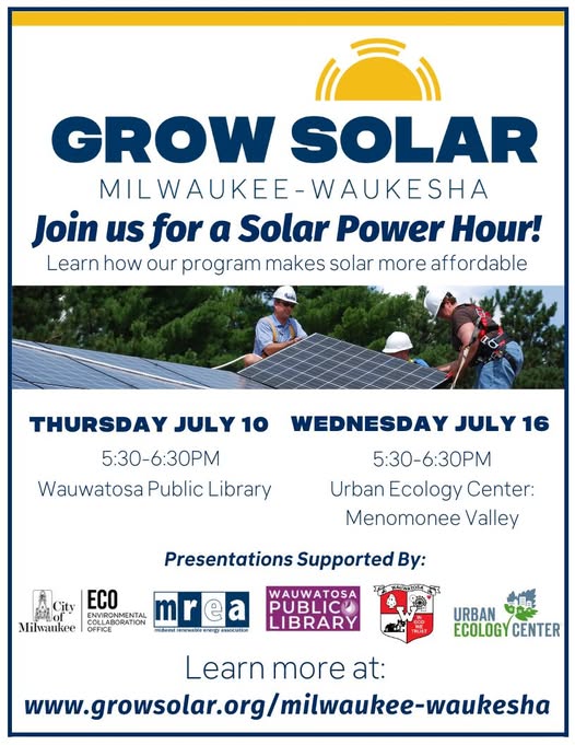 Curious about solar energy? Attend a free solar presentation from our friends with Grow Solar Milwaukee-Waukesha. Learn how the community-led program can help you switch to solar for less. Join the upcoming presentation to get started! The Midwest Renewable Energy Association (fb)