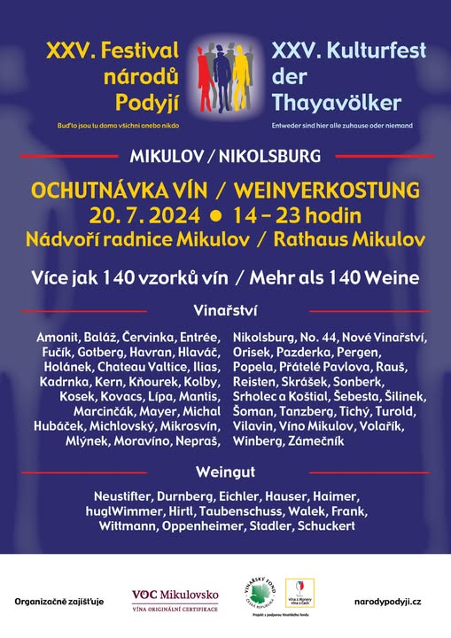Zveme vás na Ochutnávka vín při festivalu Národy Podyjí 🍷✨ Přijďte ochutnat více jak 140 vzorků vín na nádvoří radnice v Mikulově 20. 7. 2024 od 14 do 23 hodin. 🍇🎉 #FestivalNárodůPodyjí #Mikulov #Weinverkostung #Vinařství #Weingut #Víno #Kultura #Podyjí (fb)