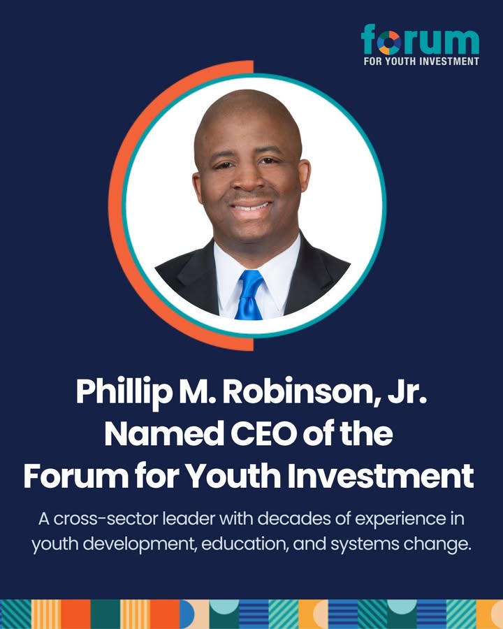 We’re excited to share some big news: the Forum for Youth Investment has appointed Phillip M. Robinson, Jr. as our new CEO! Phil brings more than 15 years of experience leading education and youth-serving organizations like Reading Partners and City Year—and he currently serves in the Ohio House of Representatives. His passion for public service and his track record of impact make him a powerful, unifying leader for this moment. Join us in welcoming Phil to the Forum family! Read the full announcement here 👉 https://forumfyi.org/blog/welcoming-phillip-m-robinson-jr/ #YouthDevelopment #Leadership #SystemsChange (fb)