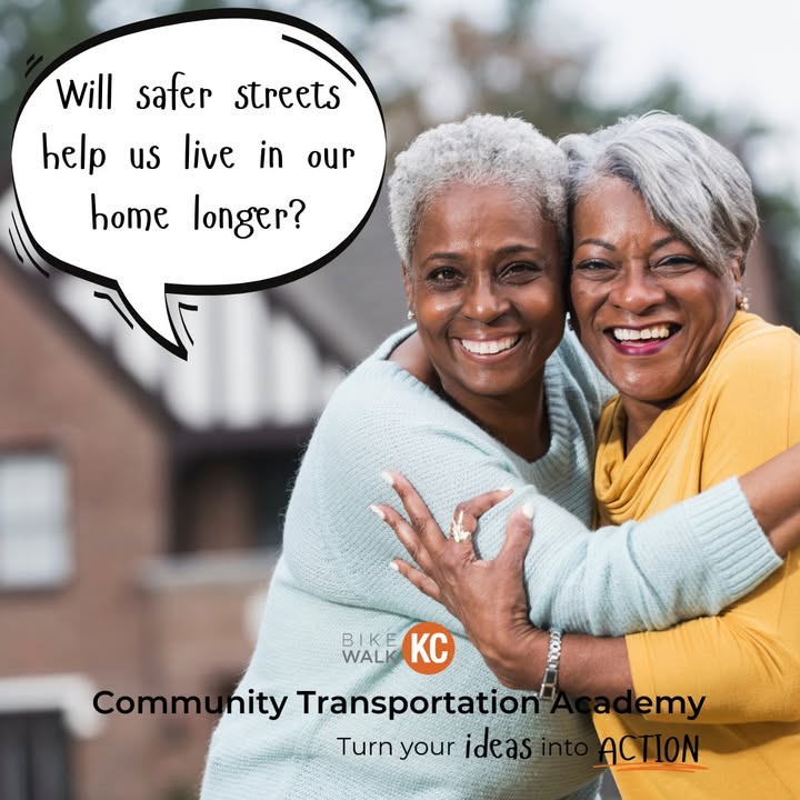 "Will safer streets help us live in our home longer?" Apply for our Community Transportation Academy by 🚨 JUNE 6 🚨 Learn more and apply: https://bikewalkkc.org/advocacy/academy/ Turn your IDEAS into ACTION! At the Community Transportation Academy, we will talk about how the Greater Kansas City transportation system is planned, designed, funded, and built (and how to demand a brighter future for your community). Open to metro residents of Clay, Jackson, Johnson, Platte, and Wyandotte counties. #StreetsForPeople #BikeWalkKC (fb)