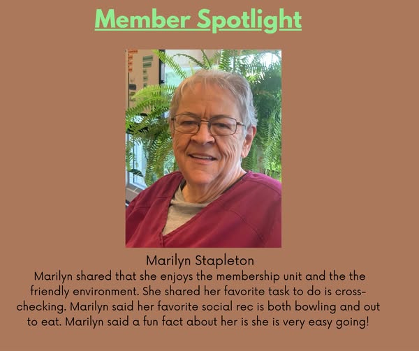 Check out our Member Spotlight for this week! ✨Marilyn is such an important part of our clubhouse community! (fb)