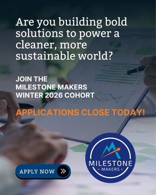 The future needs your ideas. Today’s the final day to apply for the Winter 2026 Milestone Makers: CleanTech cohort. Join a global network of entrepreneurs building the next generation of climate innovations—from renewable energy to sustainable materials and beyond. You’ll gain 1:1 mentorship, strategic coaching, and a platform to accelerate your impact. 🕒 Applications close tonight → https://nasdaqcenter.org/milestone-makers/ #MilestoneMakers #CleanTech #NasdaqCenter (fb)