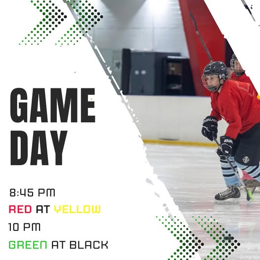 Tonight’s lineup! 8:45 Red at Yellow 10 Green at Black (fb)