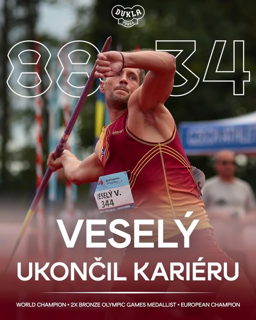 Po dlouhé a úspěšné kariéře se Víťa Veselý rozhodl ukončit svou sportovní kariéru 🏆 Během let nám přinesl nespočet nezapomenutelných momentů jako mistr světa, mistr Evropy a dvojnásobný bronzový olympionik 🥇💪🏻 S 97 hody za 80 metrů a šesti velkými medailemi se stal ikonou našeho sportu 🤩 Děkujeme, Víťo, za všechny skvělé roky a inspiraci! 🤍🙏🏻 (fb)