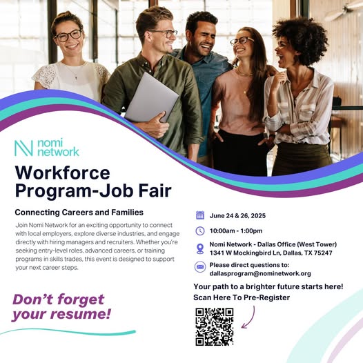It’s the final day of Nomi Network’s Career Fair in Dallas — and there’s still time to take that next step toward your future! Join us today from 10:00am-1:00pm and meet local employers, explore job openings across industries, and connect directly with hiring managers and recruiters. Whether you're job searching or exploring new career paths, this opportunity is for you. Come take that bold step forward — we can’t wait to see you there! (fb)