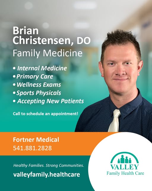 Welcome Family Medicine provider, Dr. Brian Christensen, to Valley Family Health Care’s Fortner Clinic. Dr. Christensen provides compassionate, comprehensive primary care for patients of all ages. Call 541.881.2828 to schedule your appointment today. (fb)