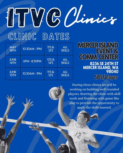 Mark your calendars! 🗓️ Calling all 11’s-12’s & 13’s-14’s, we would love to see you in the gym for these clinics! 👉🏻These clinics are for the age your athlete currently is.👈🏻 Registration is OPEN and can be found here: https://www.goitvc.com/campsclinics (fb)
