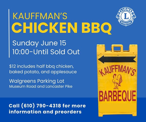 There’s still time to get your Kauffman’s Chicken BBQ tickets before Sunday! (The perfect Father’s Day lunch!) We HIGHLY recommend pre-ordering your meal to ensure you get one! However, walk-ups will be welcome until sold out. 🍗 Sunday June 15th 🍗 10:00 a.m. until Sold Out 🍗 Shillington Walgreens Parking Lot 🍗 $12 for chicken, potato and applesauce Pre-order from any Shillington or Mohnton-Cumru Lion or call Lion Al at 610-790-4318 (fb)