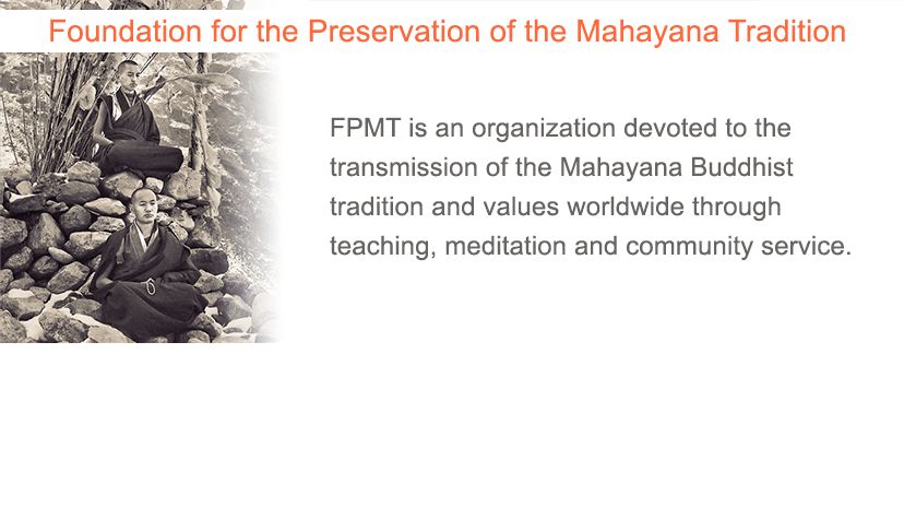 Foundation for the Preservation of the Mahayana Tradition The FPMT is an organization devoted to preserving and spreading Mahayana Buddhism worldwide by creating opportunities to listen reflect meditate practice and actualize the unmistaken teachings of the Buddha and based on that experience spreading the Dharma to sentient beings. We provide integrated education through which peoples minds and hearts can be transformed into their highest potential for the benefit of others inspired by an attitude of universal responsibility and service. We are committed to creating harmonious environments and helping all beings develop their full potential of infinite wisdom and compassion. Our organization is based on the Buddhist tradition of Lama Tsongkhapa of Tibet as taught to us by our founders Lama Thubten Yeshe and Lama Thubten Zopa Rinpoche.