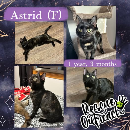 Meet Astrid! 🐈⬛💫 This benchwarmer boasts an irresistible personality and captivating appearance, with a shiny coat and distinctive ear tufts that make her a standout, capturing everyone’s attention with her unique beauty. Incredibly friendly and eager to make new friends, Astrid enjoys snuggling and purrs contentedly when receiving attention. Though she loves to play, she prefers a good snuggle session where she can lovingly lick and nibble on you. With her affectionate nature, Astrid brings so much joy to our foster home. ✨Help get Astrid off the bench and apply now at Rescue Outreach! (fb)