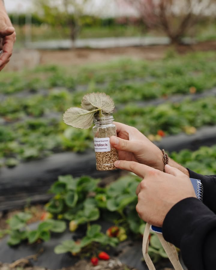 Strawberry spider mites are no joke—especially for organic farms like ours. These tiny pests hide beneath the leaves, right where sprays can’t reach. But instead of chasing them with more inputs, we lean into nature’s way. This season, we teamed up with our friends at @biotactics to introduce natural predatory mites to keep the balance. Along with our four-year crop rotation and the beneficial habitats we’ve built across the farm, these tiny allies help us reduce the need for spray programs and move toward a more resilient, balanced system. Nature knows. We just have to listen. (fb)