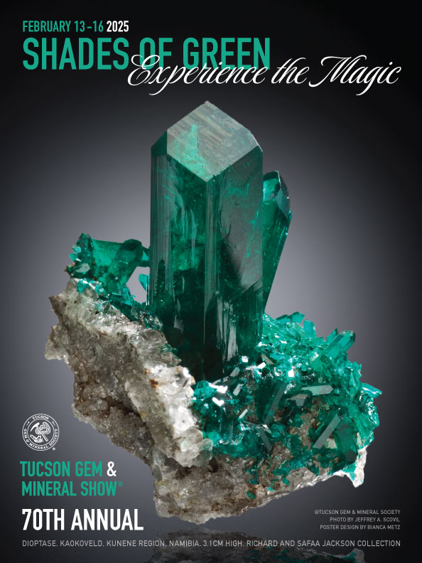 Stunningly beautiful! The 2025 Tucson Gem and Mineral Show® show poster! On sale at the TGMS Show! February 13th thru 16th at the Tucson Convention Center. (fb)