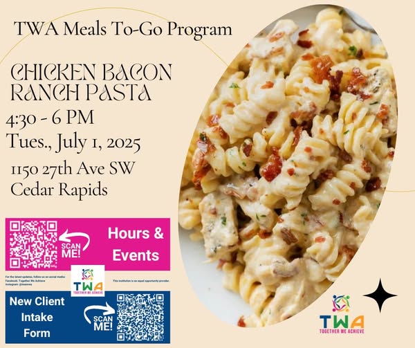 TWA Meals To-Go: Chicken, Bacon, Ranch Pasta! (fb)