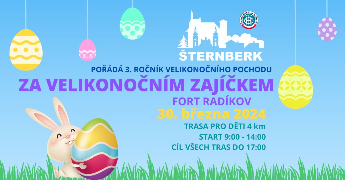 Novinky a zprávy - Klub českých turistů Šternberk Za Velikonočním zajíčkem – registrace na pochod Turistický pochod „Za Velikonočním zajíčkem“ proběhne v sobotu 30. března 2024 od 9:00. Start i cíl je ve Fortu v Radíkově. Další možné st.