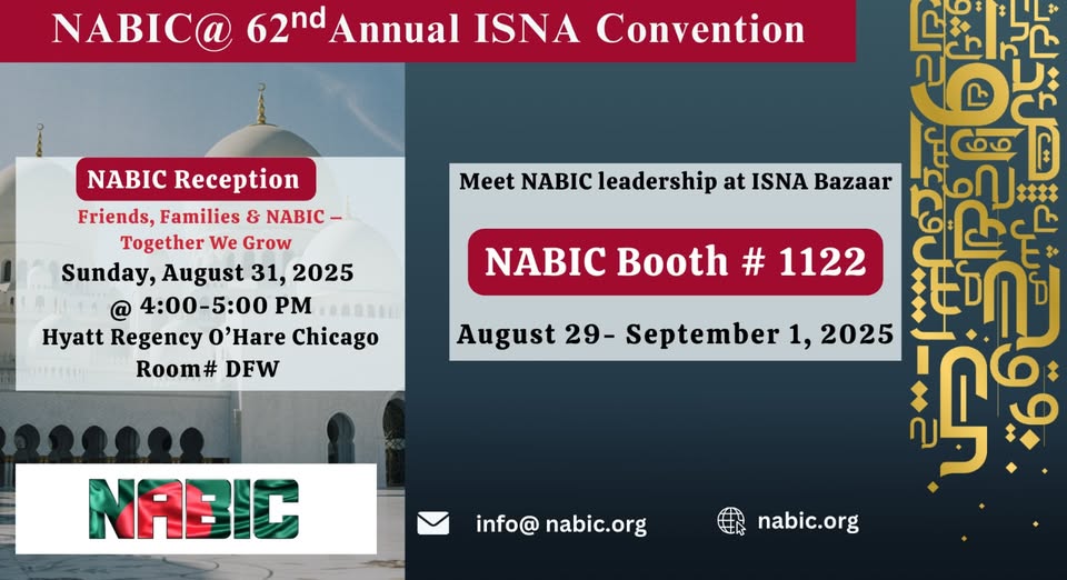 📢 Join NABIC at ISNA 2025 in Chicago! 📍 Booth #1122 | 🗓️ Aug 29 – Sept 1 Please stop by to meet our team and learn about NABIC’s work! 🤝 Friends & Family Reception 📍 Hyatt Regency O’Hare, Room DFW 🗓️ Sunday, Aug 31 | 🕓 4–5 PM We’d love to see you there! 💙 #NABIC #ISNA2025 #CommunityFirst (fb)