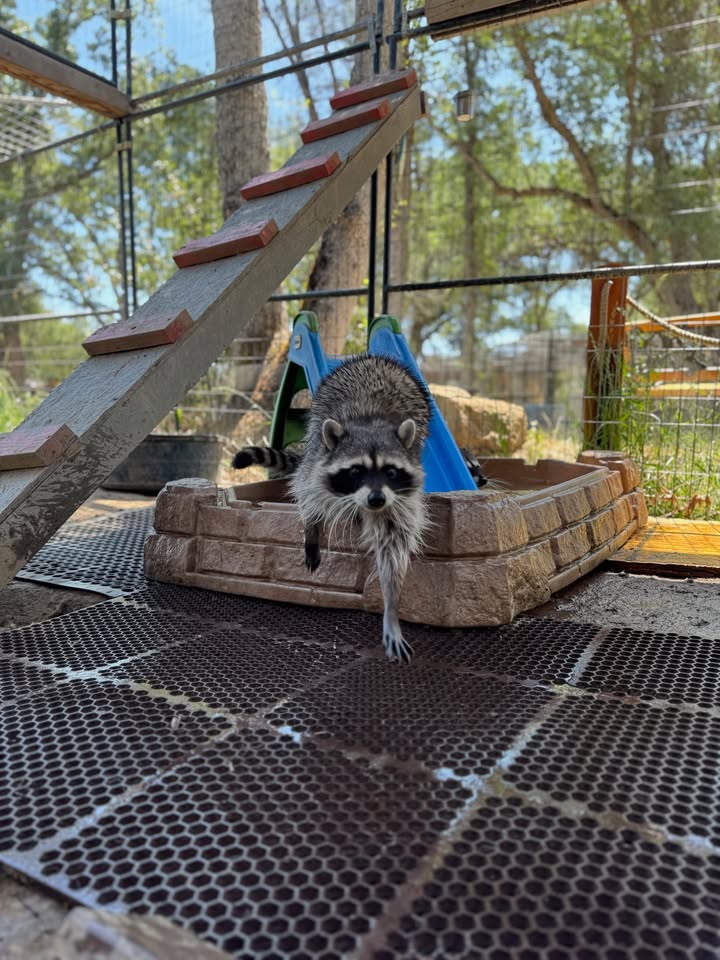 🚀🌌 Rocket & Galaxy are turning up the fun and making a splash! 💦 These two spoiled raccoons have rediscovered their favorite hangout—the pool! 😎🐾 With big personalities and even bigger splashes, they’ve been sliding, splashing, and stealing the spotlight on their raccoon-sized waterslide! 🎢🦝💕 Check out this too-cool photo of their poolside antics—you won’t want to miss these two soaking up the good life! 📸✨ Slide on by and give a quick HI👋 to Rocket & Galaxy when you book a tour at NOWW. Book Now! >>> Natureofwildworks.org (fb)