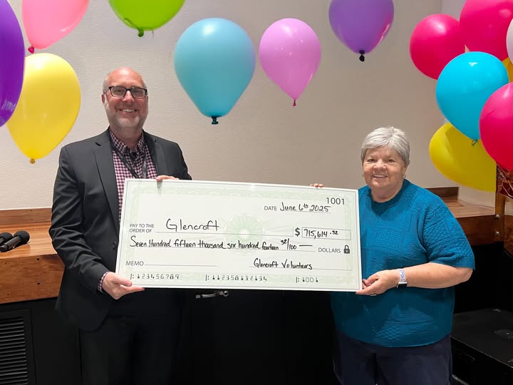 A Big Thank You to Our Incredible Volunteers! 💙 At our annual Volunteer Dinner, GCA President Marie Langan presented CEO John Thorhauer with a symbolic check for $715,614.32 — representing the 21,368 hours our volunteers gave in 2024. We couldn't do this without you. Thank you for being the heart of Glencroft! 💐👏 #VolunteerAppreciation #GlencroftStrong #ThankYouVolunteers (fb)